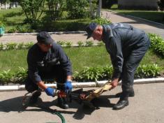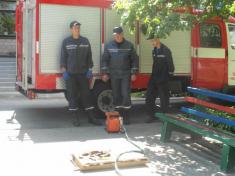 Після вдало проведеної евакуації пожежники пожежної частини №1 м.Чернігова продемонстрували можливості сучасної техніки при ліквідації надзвичайної ситуації.