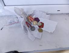 В результаті огляду, в особистих речах водія, які знаходились в багажнику автомобіля, а саме в кишенях куртки та в подвійному дні валізи виявлено медалі, монети, банкноти різних країн та номіналу.
