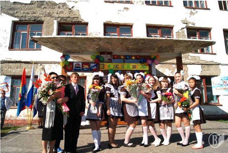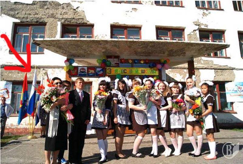 Перед вами школа одного із містечок Росії – на Камчатці. Одне фото виклали в мережі Тwitter, але згодом вдалося знайти й інше, зроблене тим же фотоапаратом, на якому добре видно Російський прапор, як і прапор Камчатки, як територіального утворення.