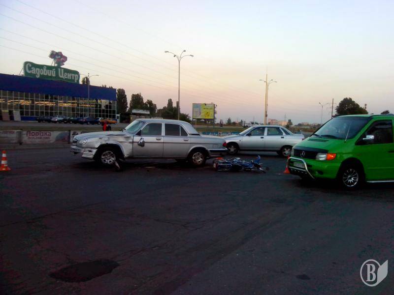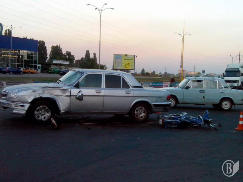 ДТП - Мерседес, Волга и простенький мопед не поделили дорогу.