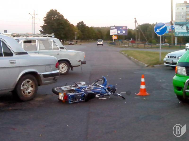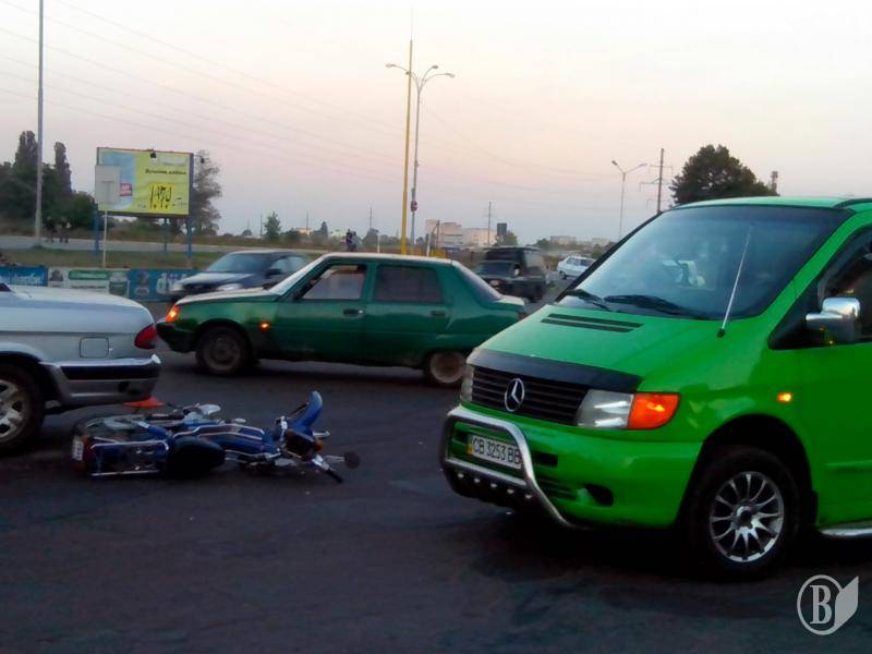 По словам водителя микроавтобуса Мерседес Ивана, он на повороте подтормозил, заметив мопед, а вот Волга почему-то рванула. Водитель мопеда смог самостоятельно подняться на ноги, но немного прихрамывал. У него травма подбородка. Наверно скорая забрала «шить».