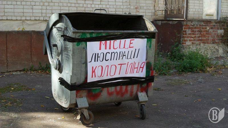 Чиновника Держкомзему Колотіліна хотіли люструвати селяни в приготовлений для нього смыттэвий контейнер, але він на все погодився.