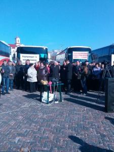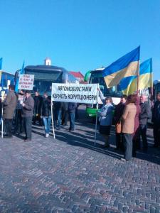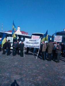 Двадцать перевозчиков из всей Черниговщины приехали в областной центр митинговать против нелегальной перевозки людей, неполного возмещения субвенций из казначейства, а вместо этого – за повышение тарифов на проезд и изменение руководства отрасли автомобильного транспорта области.