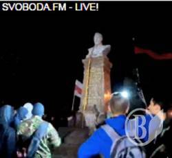 Хлопці в масках накинули на нього налигача, смикнули і відірвали бюст від пам’ятника. Потім обрядово потягали цей бюст тричі навколо постаменту і, завантажили на мікроавтобус і відвезли у невідомому напрямку.