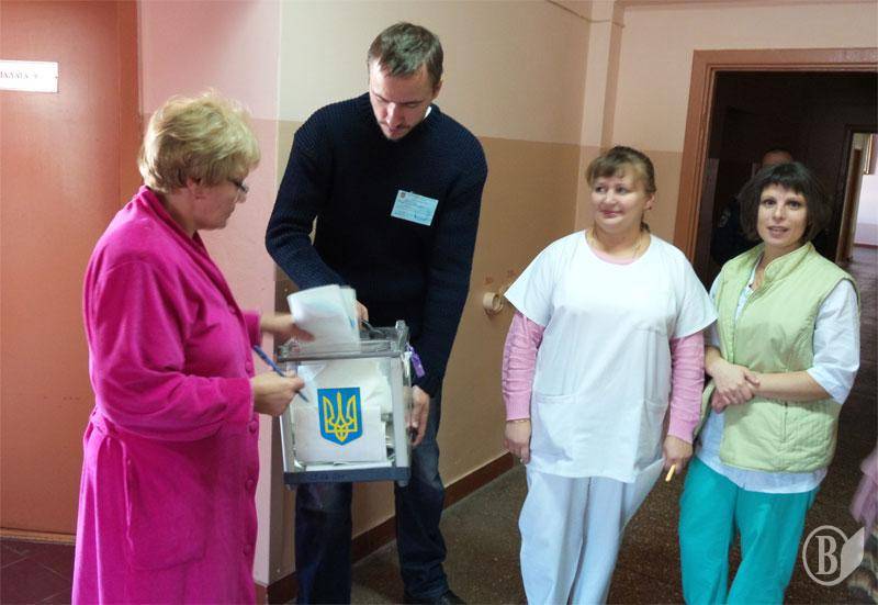 Голосування на виборах до Верховної Ради України і лікарнях відбувається по-особливому. Для тих, хто ходить, на першому поверсі облаштовується місце для голосування.