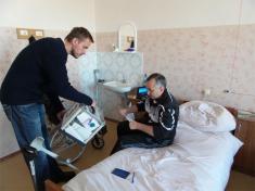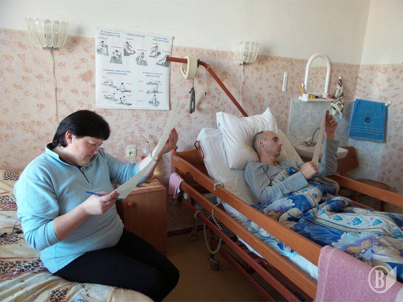 Юрій із Талалаївки лежить у відділенні з важкою травмою. Поруч дружина. Без неї він поки що обійтися не може. Але вірить, що встане і піде. Бо чоловік, який переконаний у перемозі можне подолати все. І хворобу також.