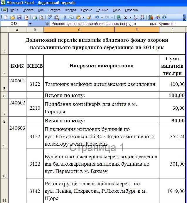 Та це ще не все. Як кажуть, гуляти так гуляти. Після затвердження Програми охорони навколишнього середовища обласна рада ухвалила також рішення про затвердження додаткового переліку видатків обласного фонду охорони навколишнього природного середовища на 2014 рік.