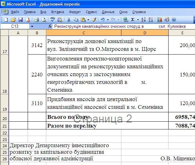 Майже мільйон – на реконструкцію очисних споруд і каналізаційної насосної станції села Киселівка Чернігівського району.