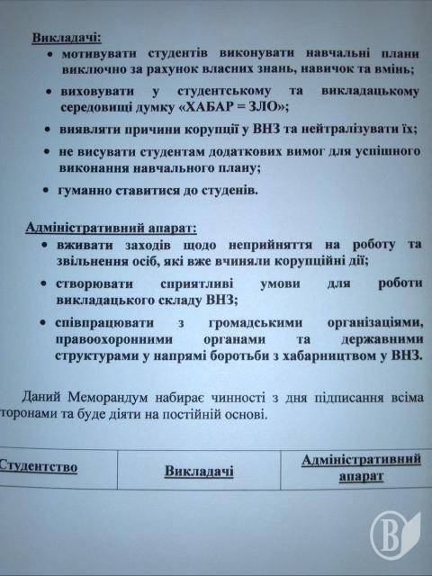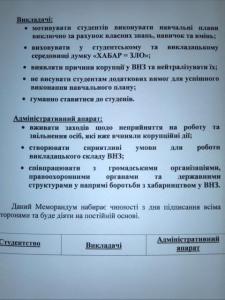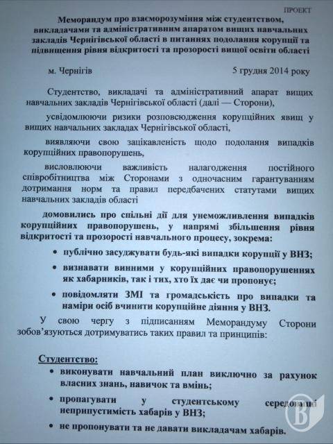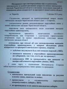 Меморандум о взаимопонимании между студенчеством, преподавателями и административным аппаратом высших учебных заведений Черниговской области, в вопросах преодоления коррупции и повышения уровня открытости и прозрачности высшего образования области