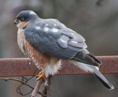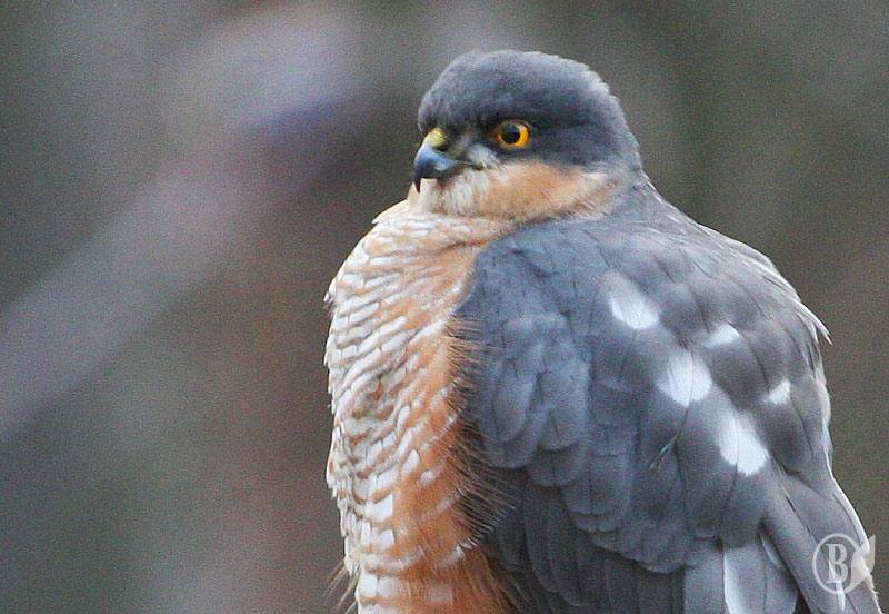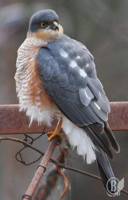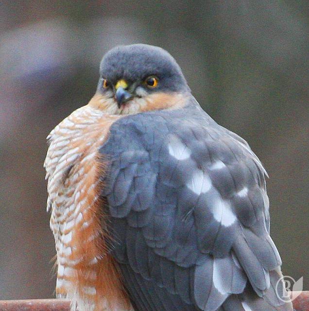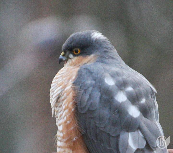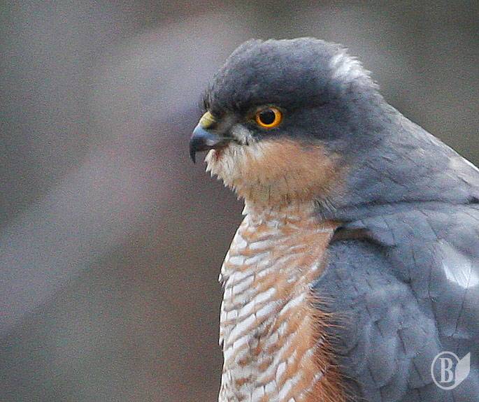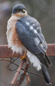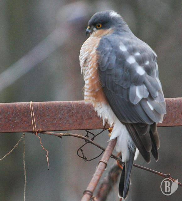 Десь за півгодини помітив навпроти вікна велетенського голуба з дивним оперенням. Але коли він повернув дзьоба – зрозумів, що це далеко не голуб. Яструб. Малий. Самець. Трохи схожий на Кібця. Але саме таке оперення виказувало його вид - Яструб малий.