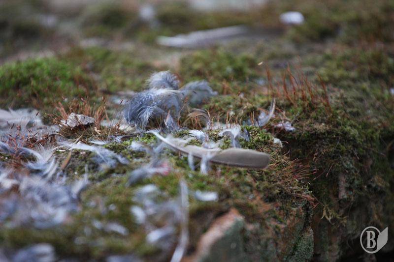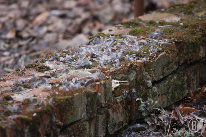 Дружина помітила за кілька кроків від годівниці багато пташиного пуху. Коли я вийшов, то знайшов тільки пух і дзьоб горобця. Кривава драма, як в блокбастері - Jaws.
