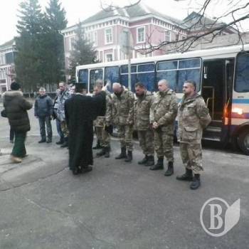 Перед отправлением бойцов благословил благочинный храма Великомученицы Екатерины (УПЦ КП), отец Евгений Орда.