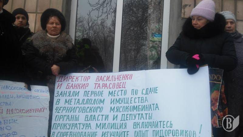 Акціонери та колишні правцівники зібрались сьогодні під стінами чернігівського м’ясокомбінату.