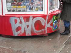 У місті діють кілька груп підлітків, які обписують, як кіоски на зупинках, так і стіни будинків у схожому стилі.