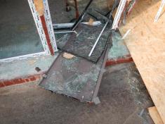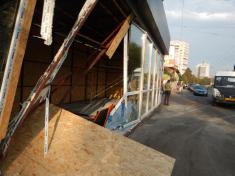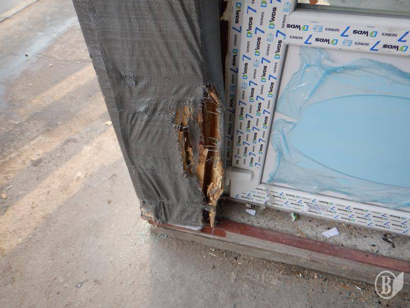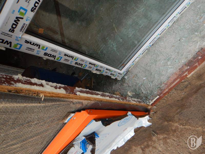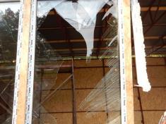 Автомобиль занесло и он врезался в стеклопакетные окна и повредил их целых 5.