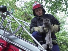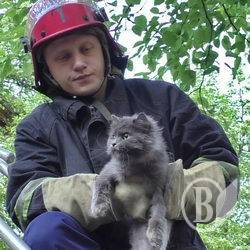 По вызову на место события прибыли спасатели 1-й Государственной пожарно-спасательной части города. С помощью автолестницы один из спасателей в боевом снаряженные поднялся к окну на четвертом этаже, где спасения ожидал уже обессиленный кот.