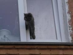 В Чернигове в окне одной из квартир многоэтажки по ул.Шевченко застрял кот и жалобно мяукал.