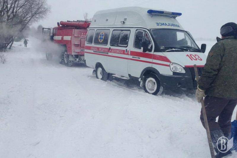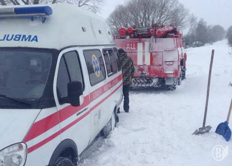 Автомобіль швидкої допомоги, що їхав на виклик до хворого чоловіка, довелося витягати зі снігу рятувальникам.