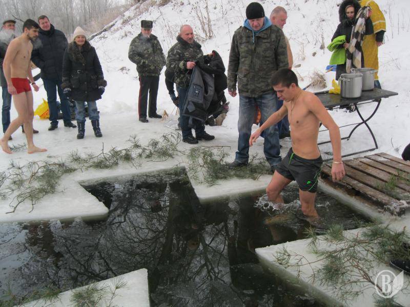 Першим, як і годиться, цілющі властивості води, на собі відчув батько-отаман, котрий купається на Водохреща з дитинства. «На цьому місці ми влаштовуємо свято третій рік поспіль, - розповів отаман Чернігівського районного козацького полку Козацького Війська Запорозького Андрій Коломійцев. – Головне, що після занурення у йорданську воду наші хлопці не просто їдуть захищати країну, але й усі повертаються живими. За увесь час АТО лише одного козака було поранено, решта не дістала навіть подряпини. Крижана купіль - це справжнє освячення перед боєм та очищення від усього лихого. Для мене хрещенська вода – початок чогось нового, того, на що сподіваєшся і чекаєш».