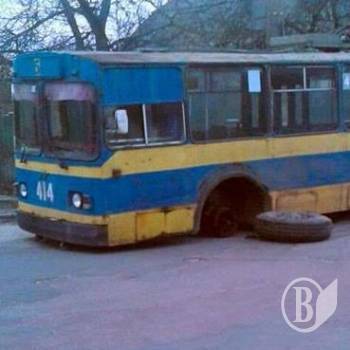 У Чернігові в мікрорайоні Подусівка у тролейбуса з бортовим номером 414 відвалилося переднє ліве колесо.