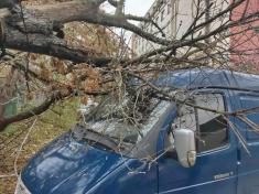 Дерево, що всім своїм виглядом просилося на знос, прибрали після падіння на авто