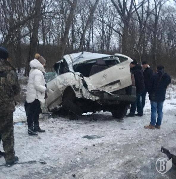 На автошляху з Києва у Чернігів вранці 17 січня близько 7 години тягач з причепом вдарив білий вен «Мерседес», що стояв на узбіччі.