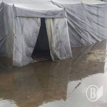 Групу з 53 механізованої бригади зустріли на Гончарівському полігоні намети, непридатні до проживання через практично суцільне затоплення.