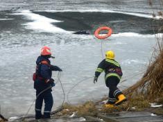 Тренувалися рятувальники відділень підводного розмінування та рятувальних робіт Аварійно-рятувального загону спецпризначення УДСНС України у Чернігівській області – відпрацювали дії з порятунку потопаючого, який провалився під тонку кригу.