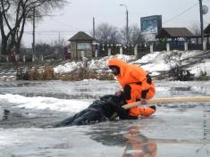 Чернігівські рятувальники на власному водолазі відпрацювали дії з порятунку потопаючого, який провалився під тонку кригу.
