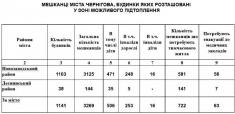 Спеціалісти також встановили, скільки у цих будинках проживає дітей, осіб з інвалідністю та скільки людей загалом потребує тимчасового відселення у разі сильної повені – це 722 особи. Але після проведених обстежень будинків, що здійснювалися працівниками Новозаводської районної у місті Чернігові ради, які оглянули й будинки у районі Чернігівської ТЕЦ та по вул. Кропивницького, з’ясовано: якщо буде потрібна евакуація, то в середньому необхідно буде розселити близько 150-200 осіб. За потреби їх будуть розміщати у будівлях міських шкіл: № 2, 3, 4, 16, 24.