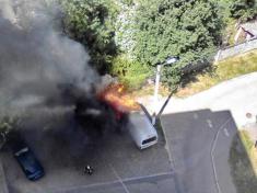 В Чернігові у дворі однієї з житлових багатоповерхівок сьогодні погорів білий мікроавтобус.