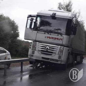 На свіжовідремонтованій вулиці Лісковицька в Чернігові, після встановлення там огородження, на нього наїхала фура.
