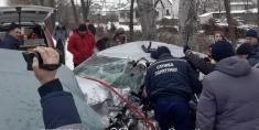 Рятувальникам довелося зрізати легковику дах, щоб дістати заблокованого в середині постраждалого водія.