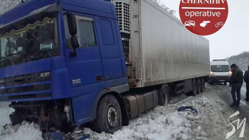 На трасі М01 у Чернігівській області сталося зіткнення легковика (кросовера) KIA та тягача DAF XF з причепом.
