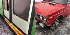 Радянський ВАЗ розтрощив двері тролейбуса в Чернігові