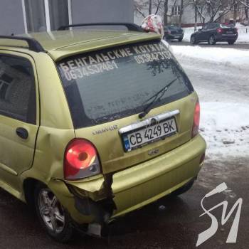 В Чернігові на перехресті вулиць П’ятницької та Софії Русової зіткнулися два авто й один дорожній знак.