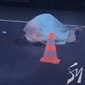 На переході через проспект Миру на перехресті з вул. Мартина Небаби (раніше – Боженка) працюють патрульні навколо накритого простирадлом тіла і старого закривавленого «Жигуля» – ВАЗ-2106 з чернігівським номером СВ5765АМ.