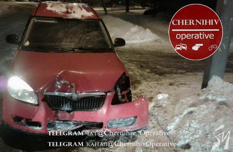 В Чернігові на проспекті Миру, 80 водій невеличкого червоного легковика «Skoda» не впорався з керуванням ним.