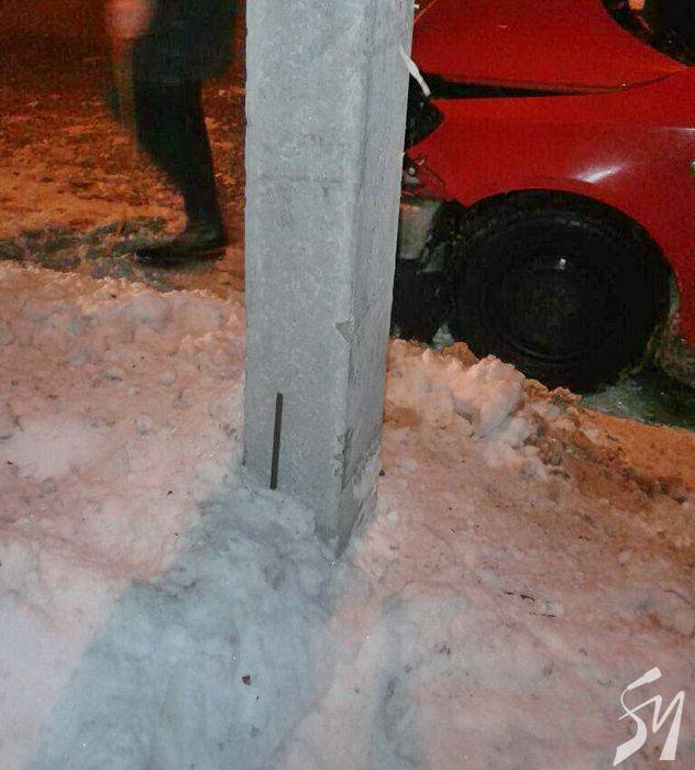 В результаті зупинив неконтрольований рух авто бетонний стовп.