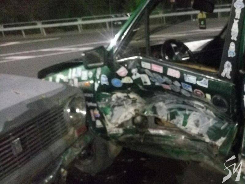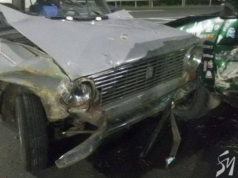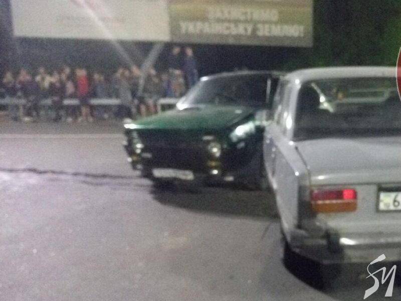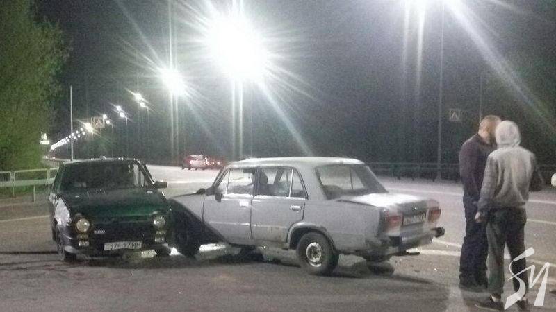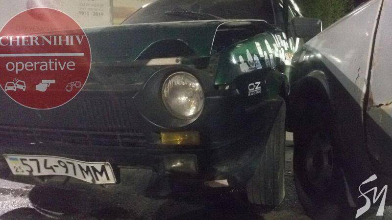 На «злітній смузі» на південному в’їзді до Чернігова, з видом на храм св. вмц Катерини з підсвіткою, побилися два старенькі легковики.