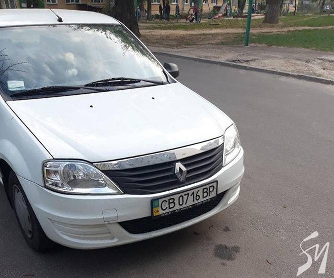 Це авто «Рено Логан» білого кольору з держномером реєстрації в Чернігівській області СВ0716ВР.