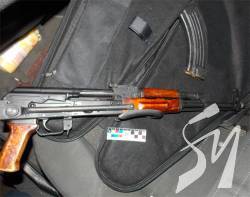 При оформленні в міжнародному автомобільному пункті пропуску «Славутич» на виїзд з України легкового автомобіля «MERSEDES», в ході його огляду прикордонним нарядом спільно з інспектором митниці в ніші за сидінням пасажира виявлено металевий предмет схожий на вогнепальну зброю зі спорядженим магазином та один 9-мм патрон.