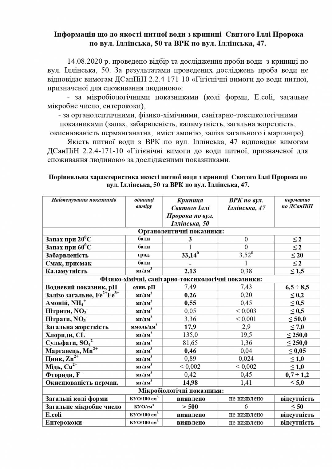 Сергій Малявко конкретизував, що у воді з колодязя виявлена як дуже значна кількість патогенних мікроорганізмів, так і перевищення норм по марганцю – а це теж дуже серйозний показник по впливу на здоров’я людини. Тому найбільш прийнятний варіант, на думку фахівців – все-таки встановлення біля Іллінської церкви водорозбірної колонки. Вона може бути сучасною – наприклад, така як біля П'ятницької церкви.