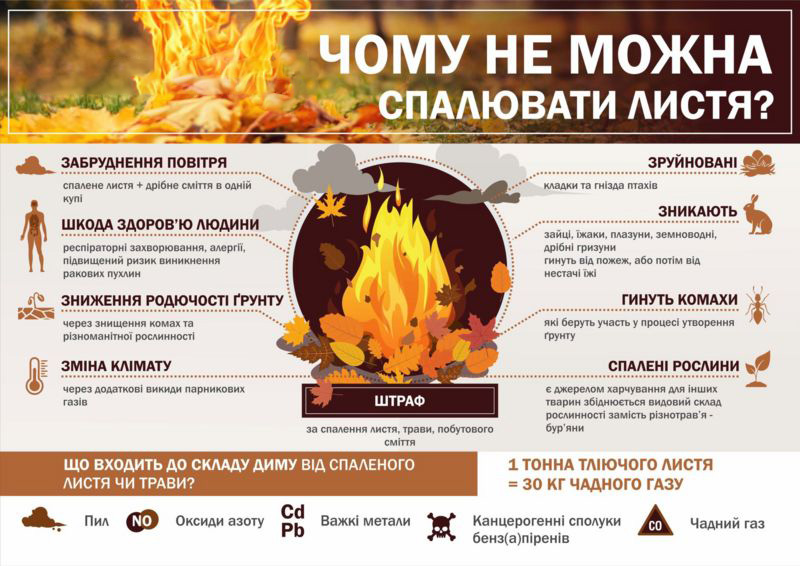 Спалювання призводить до забруднення атмосфери, води і ґрунту. Небезпека полягає і в тому, що воно може перерости в неконтрольоване горіння.