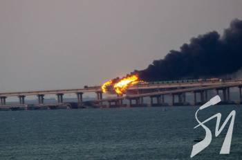 Російські окупаційні ЗМІ поширюють відео з моментом вибуху на Кримському мосту.
