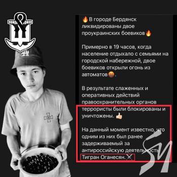 Телеграм-канал "Бердянськ сьогодні" повідомив, що інформація про вбивство Тиграна, швидше за все, правдива.