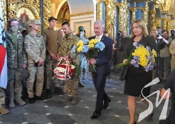 В Україні відбулася церемонія відкриття барельєфу на честь святого князя Костянтина Острозького на стіні Успенського храму Києво-Печерської Лаври. Під час урочистостей до присутніх українською мовою звернувся Посол Литовської Республіки Вальдемарас Сарапінас.