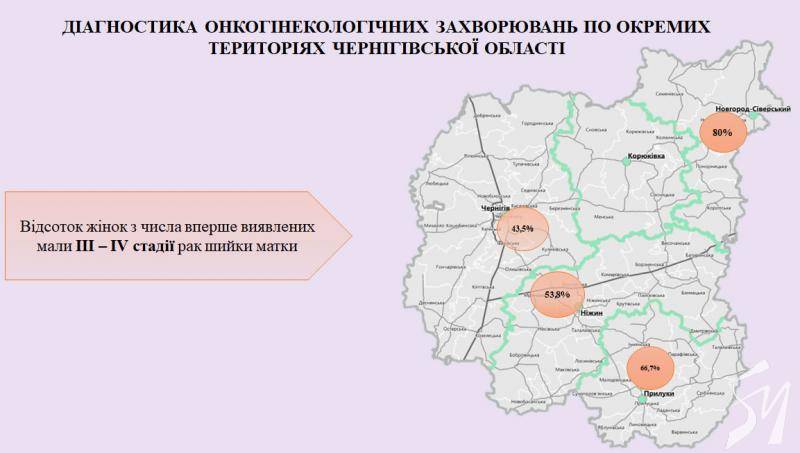 У деяких районах цифри шокують: у Ніжинському районі 53,8% випадків раку шийки матки виявляють у занедбаному стані, у Прилуцькому – 66,7%, а у Новгород-Сіверському – аж 80%.