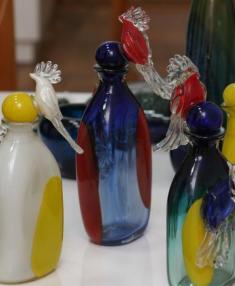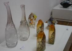 Гутне скло – це витвір мистецтва, що народжується в полум’ї. На жаль, ні львівської фабрики, ні київського заводу вже немає, тому найбільшу цінність складають авторські вироби, які виготовлялись в обмеженій кількості до ювілейних дат і виставок. На виставці представлені неповторні і самобутні роботи Франца Черняка («дари моря», 1987), Івана Аполлонова («Полонина», 1983), Світлани Голембовської (набір «Біла квітка», 1970).