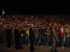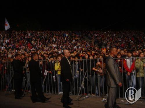 На третий день возле сцены время от времени случались удивительные вещи: даже, если ты аккредитованный журналист, гость, в определенные моменты охрана могла попросить тебя уйти. В чем дело? Оказывается, это зависело от перемещения Андрея Данилко. На саунд-чеки и назад артиста сопровождал целый отряд милиции и несколько личных охранников. Во время передвижения мегазвезды, с дороги оттесняли всех.